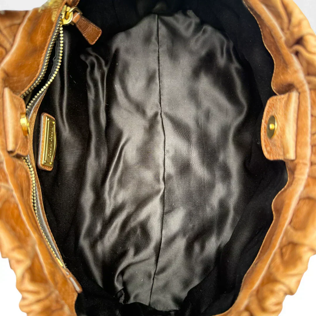 Miu Miu Vitello Lux Handtasche aus dunkelbraunem Leder mit Umhängegurt, vintage Style – eleganter Streetwear-Look für jeden Anlass.
